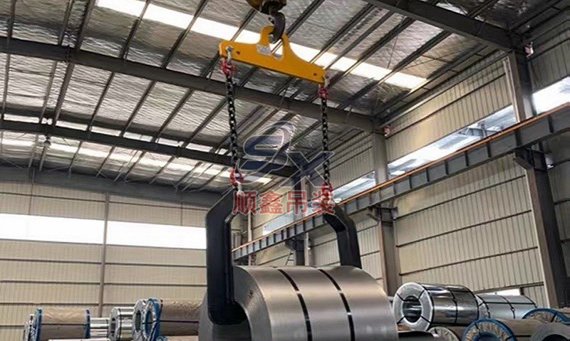 翻轉(zhuǎn)吊具通過機械剪力原理,對立式擺放的卷鋼進(jìn)行單邊抓取,來完成卷鋼的裝卸,當(dāng)改變重力點時,可以對卷鋼進(jìn)行翻轉(zhuǎn),作業(yè)時不傷鋼卷。其吊耳采用加厚處理,焊縫飽滿牢固、延長使用壽命。